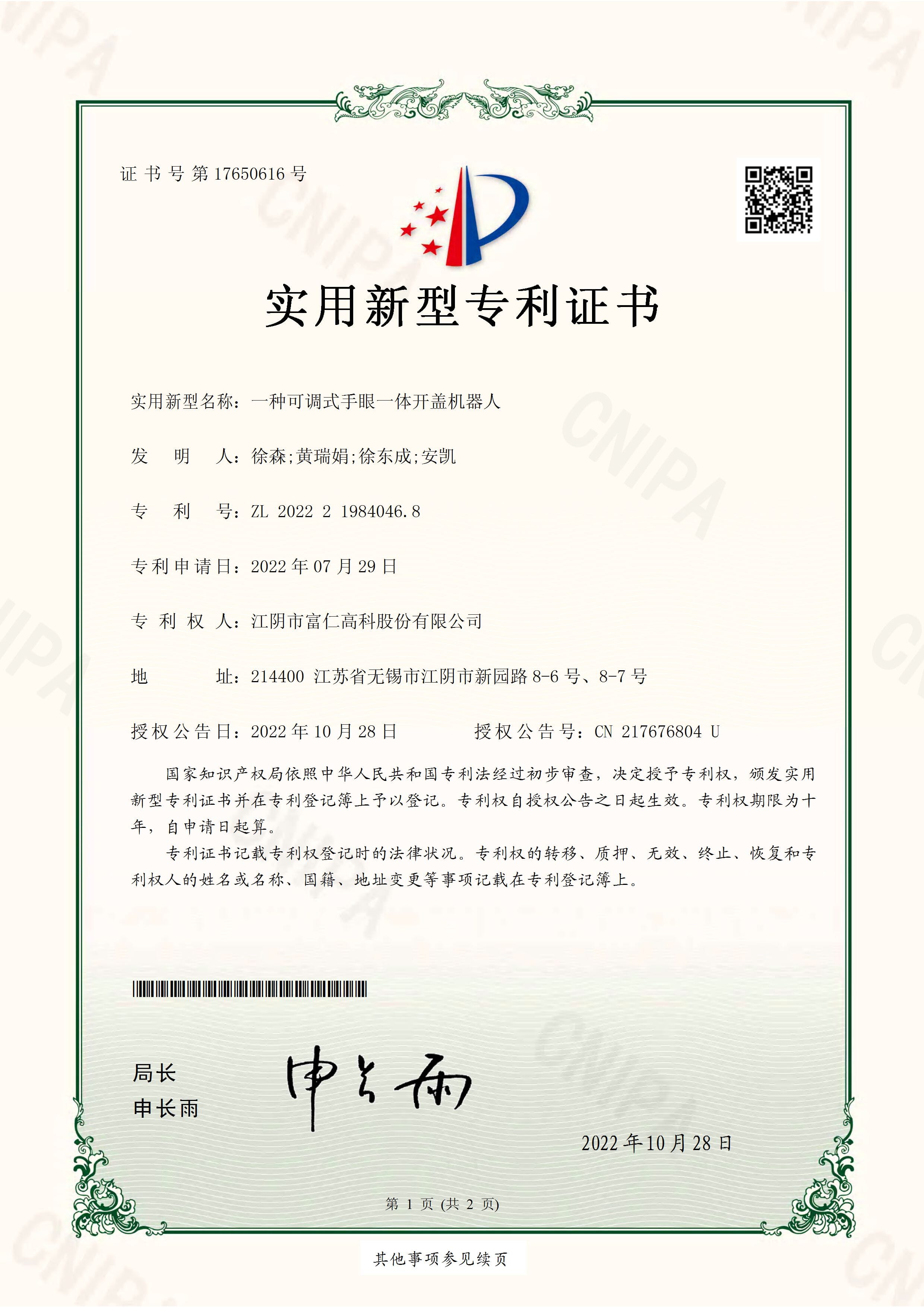 如今,在人工智能大环境下,机器人业务规模持续扩张,产能需求快速增长,为更专注、高效地推动产业智能化升级,原隶属于富仁高科的机器人项目于2025年正式独立运营,成立江苏富仁工业机器人有限公司。以“深耕场景化应用,技术驱动创新”为愿景,为客户提供安全、高效、创新的服务装备。